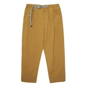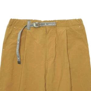 – This Nylon Tapered Pants was finished with oxford fabric, made of nylon taslan yarn with a cotton-like touch and a grainy surface texture, has high density and firmness. It has an initial water repellency. Tapered silhouette pants have a stretch waist and a tape belt.