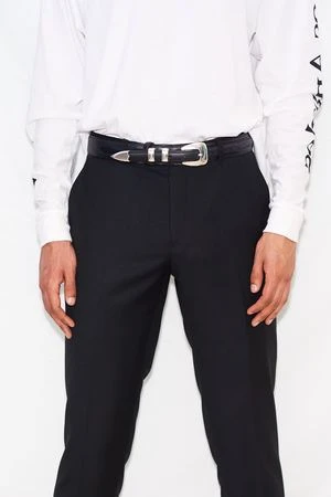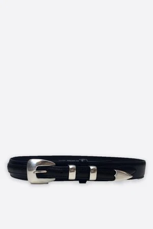 Western inspired belt in classic Texas Ranger style. Genuine oil tanned leather belt with sterling silver hardware.
