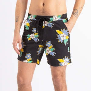 This all over screen print floral boardshort has a 17″ outseam. Featuring an elastic waistband, cotton drawcord, mesh pockets and back patch pocket, and recycled polyester woven labels.