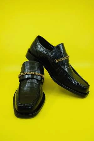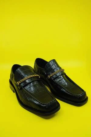 Ernest W. BakerLeather Gold Braided Chain Loafers – Black
