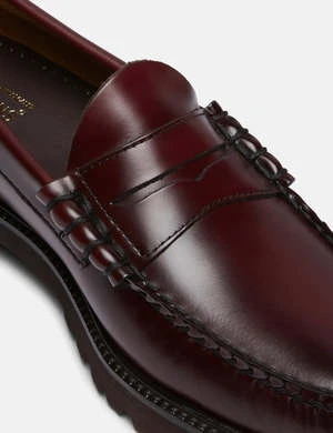 The G.H. Bass Weejuns 90 Larson Penny is a timeless classic loafer, crafted from polished Burgundy Wine leather and hand-stitched seams in waxy thread.