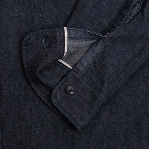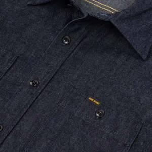 Iron Heart’s classic work shirt, constructed from indigo rope dyed warp and a grey weft, woven in a 2×1 twill. Featuring the brand’s over-engineered construction, in the form of selvedge detailing and heavy chain stitch construction.