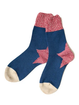 Socks with a star design on the heel. The accented marbled color makes you feel warm.
