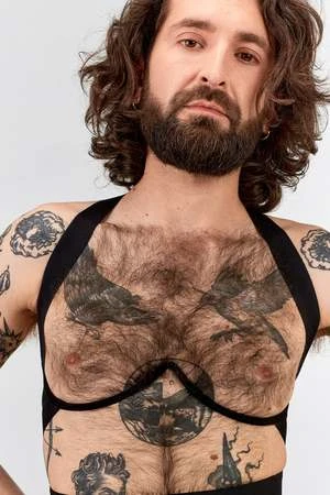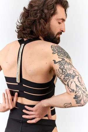 Some well placed elastic bands creating lines that mimic the lines of our holy ribcage.Wear this stunner on alone to create the illusion of a bra but leaving the skin bare to the touch, or over a top as outerwear for a powerful silhouette. A magical shape shifter, indeed that works beautiful with or without breasts.
