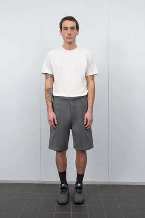 The band short is constructed from california grown cotton (san joaquin valley). This short has a formal look with lounge-like function. Featuring a drawstring elastic waist for comfort and a loose fit with two side scoop pockets. Pin tuck center seam with binded side seams.