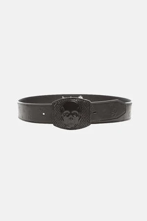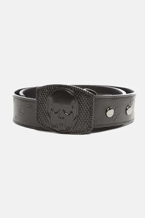 Get into this embossed signature Lucien Pellat-Finet weed leaf monogram skull buckle belt. The perfect belt to add edge to any look.