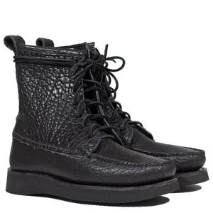 There are countless footwear brands in the world today but there are only a handful of brands that physically make their own product, stitch by stitch, tack by tack. Maine Mountain Moccasin is one of those brands and they have produced their own inspired style of early handsewn moccasin boots called the Mohawk Trail boot. Made from a black bison leather, this boot is one you will put on and will not want to take off your feet.