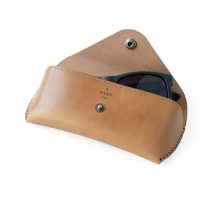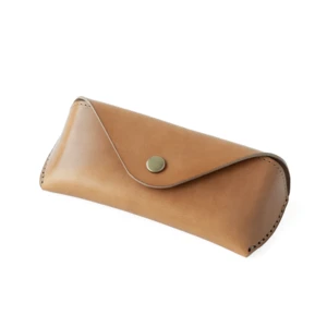 Snap front closure. Machine sewn and handsewn, edge painted with brass hardware. Fully lined, duplexed body.