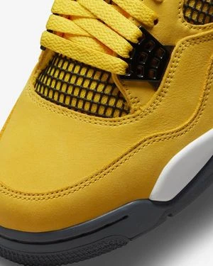 Originally released in 2006, the Air Jordan 4 Retro Lightning (2021) is one of the most renowned retro Jordan 4 colorways in Jordan Brand’s catalog. It features a Tour Yellow Durabuck upper with black netted panels and dark grey eyelets. On the tongue, a black Jordan Flight logo patch with white and yellow accents complements the upper. From there, a Jumpman logo on the heel tab and white midsole with a visible Air unit completes the design.
