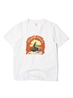 Printed crew neck tee in clean, crisp jersey made with organic cotton. The beautiful faded shade and vintage look result from the pigment-dyeing process, and on top of that, a garment stone wash. This gives the kind of lived-in outlook that we think goes so well with denim. The color will continue to fade with time as you wear and wash it. Climb a mountain today.