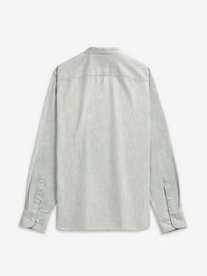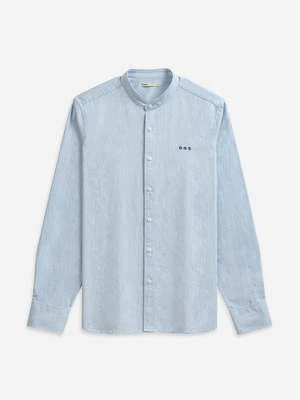 Constructed with the finest, most breathable cotton oxford cloth, the Aleks Heather Oxford has been garment dyed and washed for a soft feel and broken in look. This textured band collar shirt features our new contemporary logo as well as a rounded cuff and curved hem.