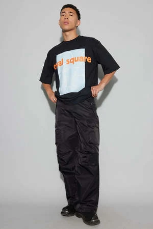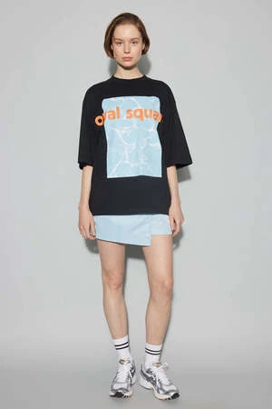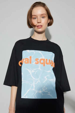 Signature Oval Square short-sleeved, relaxed fit logo tee. Made from a soft and smooth organic cotton, featuring a round neck with ribbed trim and short sleeves. Background water print with orange logo detail at chest.