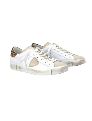 Philippe Model PRSX Low Sneaker in Leo Blanc Brun