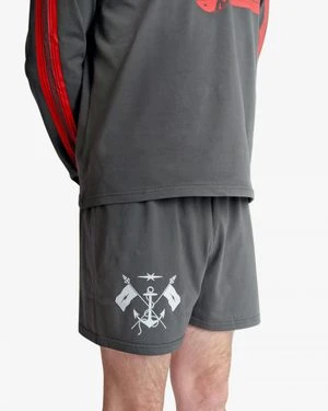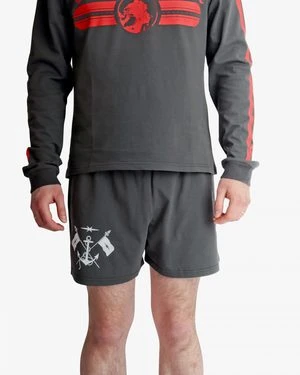 A black short-sleeve cotton jersey t-shirt from PHIPPS in a heavy weight cotton jersey. Features a boxy fit, ribbed crewneck collar and chest graphic depicting Americana paraphernalia. Crafted from 100% organic cotton with low environmental impact printing. Manufactured in Portugal.