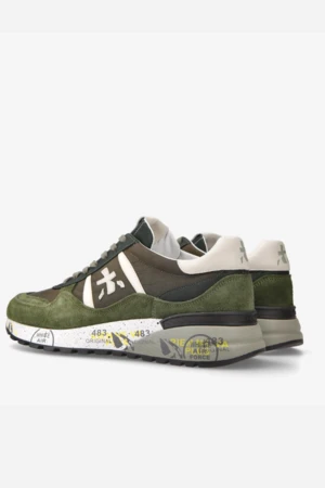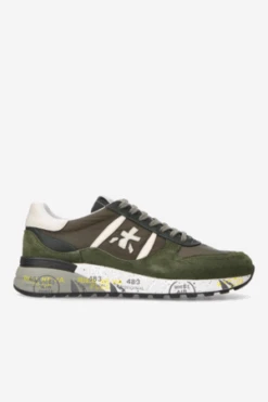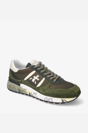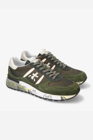 The Landeck sneakers reinterpret the Lander model with soft lines. Classic DNA with an extra boost. Developed in soft suede leather and nylon. The look is enhanced by the unmistakable Premiata logo and green accents. Ergonomic and super lightweight sole.