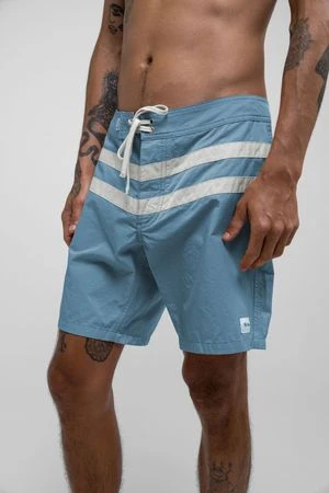 The Rhythm trunk is a summer essential made from a light and durable 100% nylon fabrication in a 17″ above-the-knee retro style. Features a button-down back pocket with an internal key loop and button fly with adjustable drawcord.