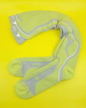 Technical knee-high socks in contrast knit fibers. Uses Dryarn fibers that are lightweight and thermoregulating for optimal comfort and durable dry freshness. Contrast knit style with knit logo graphic at the opening and on the foot. Features; dryarn lightweight thermoregulating fibers, excellent wicking and fast drying, contrast knit style, knee-high length socks.