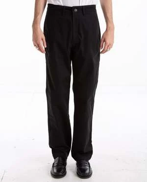 Ross Brushed Cotton Pant in black by Saturdays. Fabricated from brushed cotton, the Ross pant features a straight leg, chino design with five-pocket construction and a zip fly and button closure. Completed with a woven logo patch on the back, the pant is cut in a regular fit.