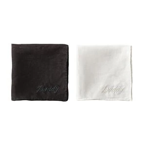 These handkerchiefs are destined to be worn close to the heart, with expertly embroidered sentiment. Nestled in a beautiful keepsake box, the pair of pure linen handkerchiefs one black and one white will have pride of place in their pocket.