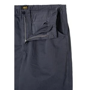 Relaxed fit active pant in a lightweight Navy herringbone poplin fabric. The tight weave of the fabric provides natural wind resistance whilst still being breathable.