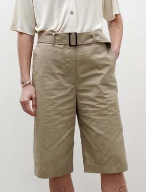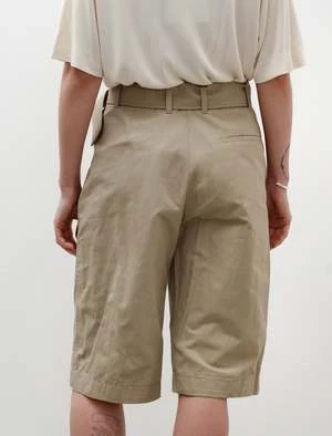 Straight-legged cotton shorts that feature a crisp finish and clean lines for a sharp silhouette. Cut longer, they finish above the knee for a distinguished touch; elevating any look with their smart character. Additional details include a zip fly, side seam pockets and Studio Nicholson’s signature slide buckle belt.