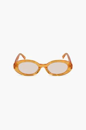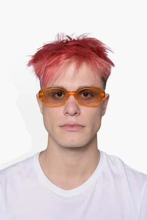 Oval shape frame with polarized lenses and a silver gilded logo.