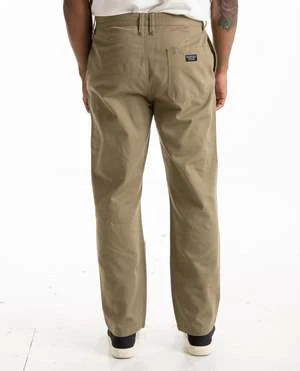 Minimal Thrills Work Chino in tan by Thrills. A relaxed fit chino pants with a zip fly closure, side pockets and patch pocket on the back.