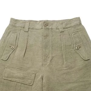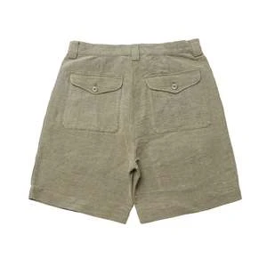 – U.Sage’s Linen Shorts are made of high-quality color woven cotton and linen blend fabric. The heavyweight fabric makes the pants stiff and advanced, with the comfort and sweat absorption of cotton and the dryness and breathability of linen. Through the fabric’s own crosshatch and belly yarn, the shorts are infused with a vintage, primitive and rustic feel. The cut is mid-waist with double pleats on the front side.