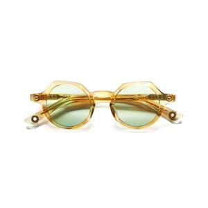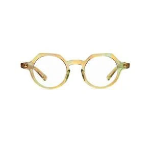 Unisex fit, blunted circular frame w/ minimalist temple design