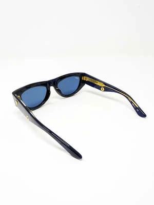 This special series from Vada is from their Tokio, Texas eyewear collection, celebrating juxtapositions of geometry, jazz, feminine and masculine. The Tokio group is a wrap ska-style frame. Inspired by Ska fashion and Tokyo’s 80s underground scene. The series features all 18k gold-tone details: 5-barrel rivet hinges, double wing-tip temples, and engraving. The arms include 18k gold rivets designed to hold Vada’s gold chain retainers, making this eyewear and jewelry at once. Handmade in Japan in micro-batches with organic cellulose acetate. Unisex.