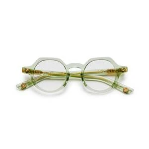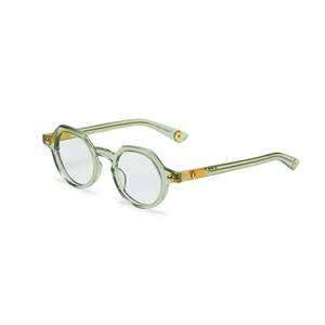 Unisex fit, blunted circular frame w/ minimalist temple design