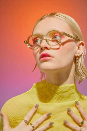 Zero-g meets zero f*cks. Cosmic and classic at once. Each pair features a lightweight circular frame shape, signature domed metal adornments, and rivets designed to hold VADA’s chain retainers- making VADA Eyes eyewear and jewelry at once.
