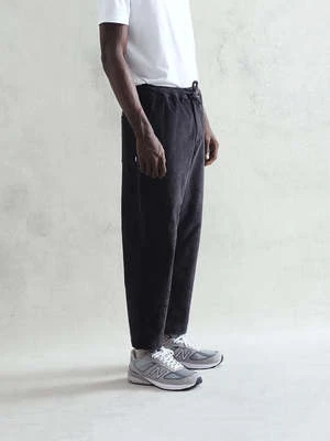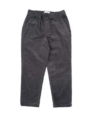 The Kurt Trouser in dark grey penn cord is designed to have a relaxed fit for a slightly tapered cropped leg length, featuring an elasticated drawstring for comfort, a button fastening and a concealed front opening zip.