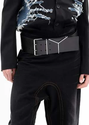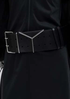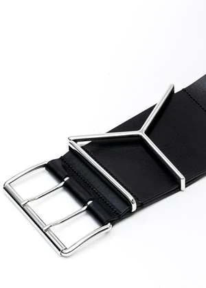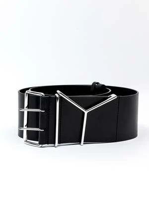 90mm Wide belt in black, from Y-Project. Features an exaggerated cosntruction with a 90mm thick leather belt and two-layered pin fastening. Silver-tone hardware throughout.